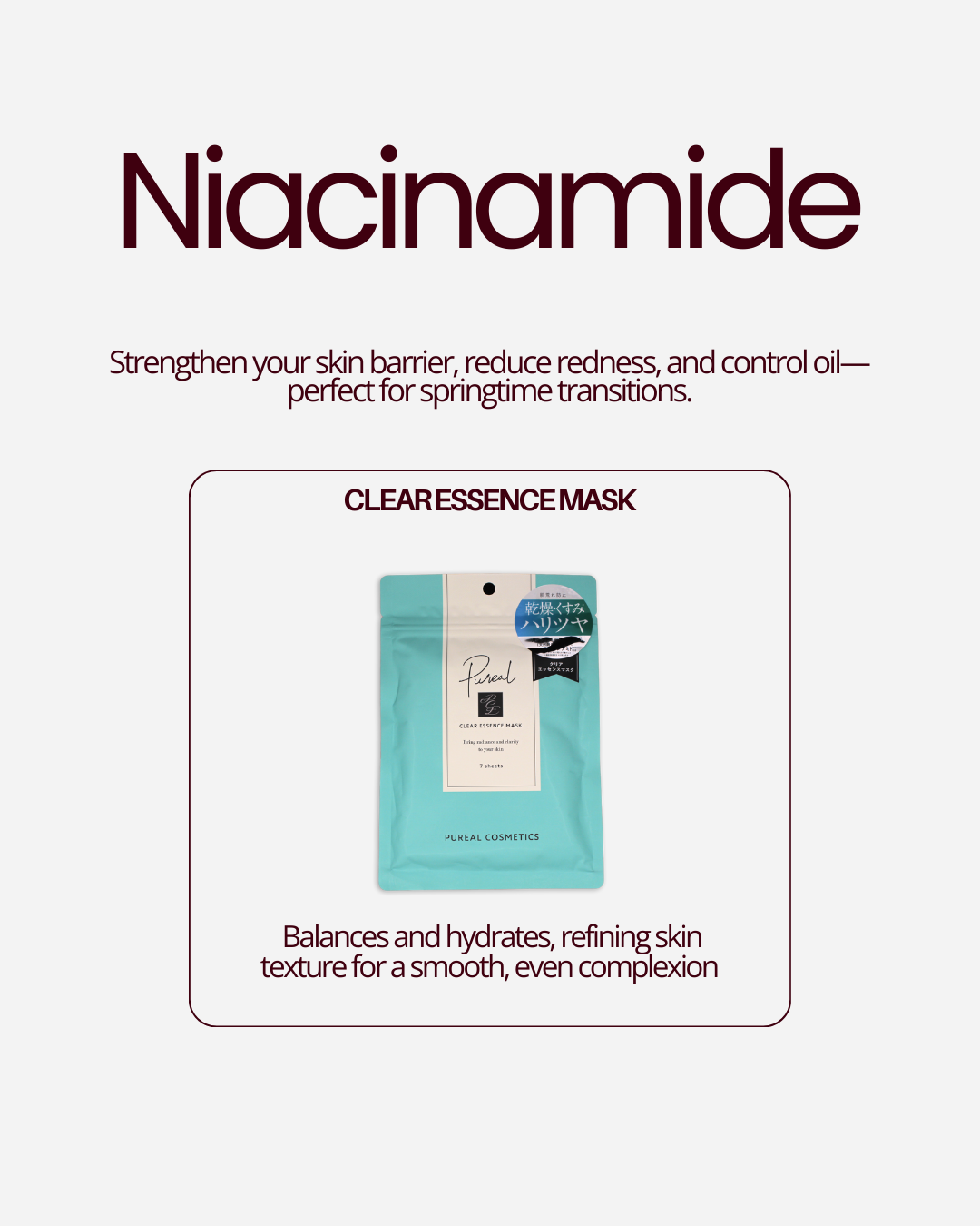 - Clear Essence Mask: Start your renewal journey with a week-long treatment focused on balance and hydration. Rich in natural fermentation extracts and niacinamide, this mask refines and smooths your complexion, creating the ideal base for seasonal radiance.
