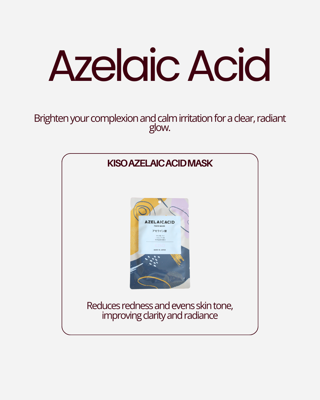 - Azelaic Acid Mask: Tackle redness and spots, uncovering a more even and bright skin tone.