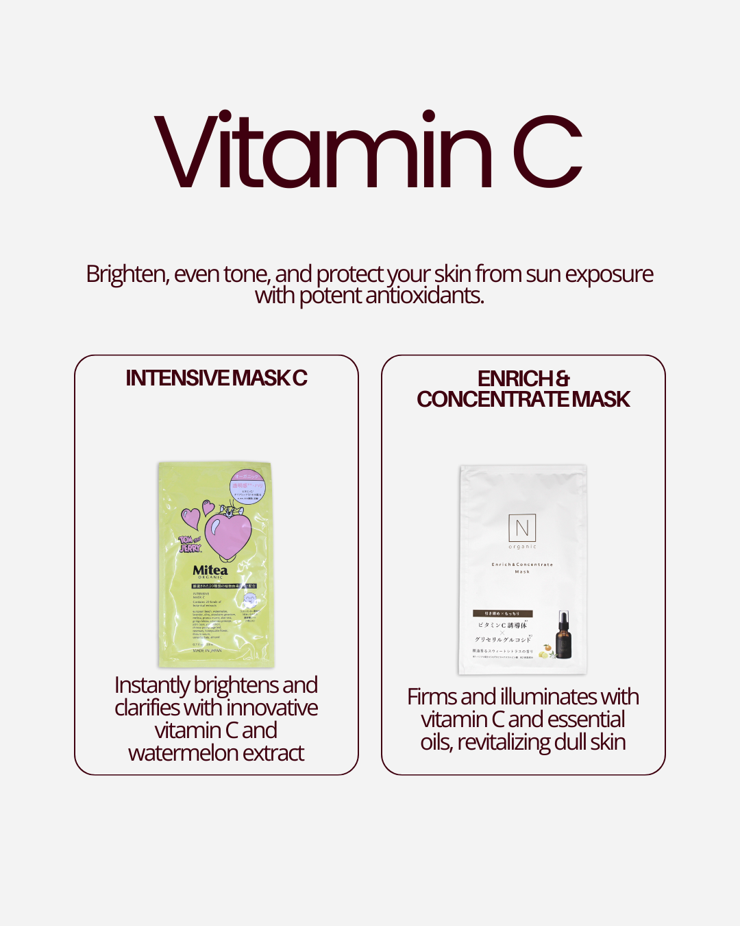 - Intensive Mask C: Instantly brighten your complexion with innovative Vitamin C and watermelon extract, achieving renewed clarity and vitality.